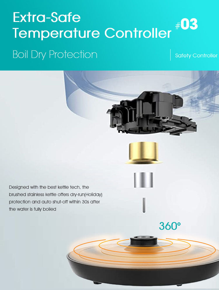 - PRECISE & SAFE: With its professional thermostat technology, this electric tea kettle can automatically shuts off when overheating. Additionally, boil dry protection turns off the heating element when the kettle is empty.